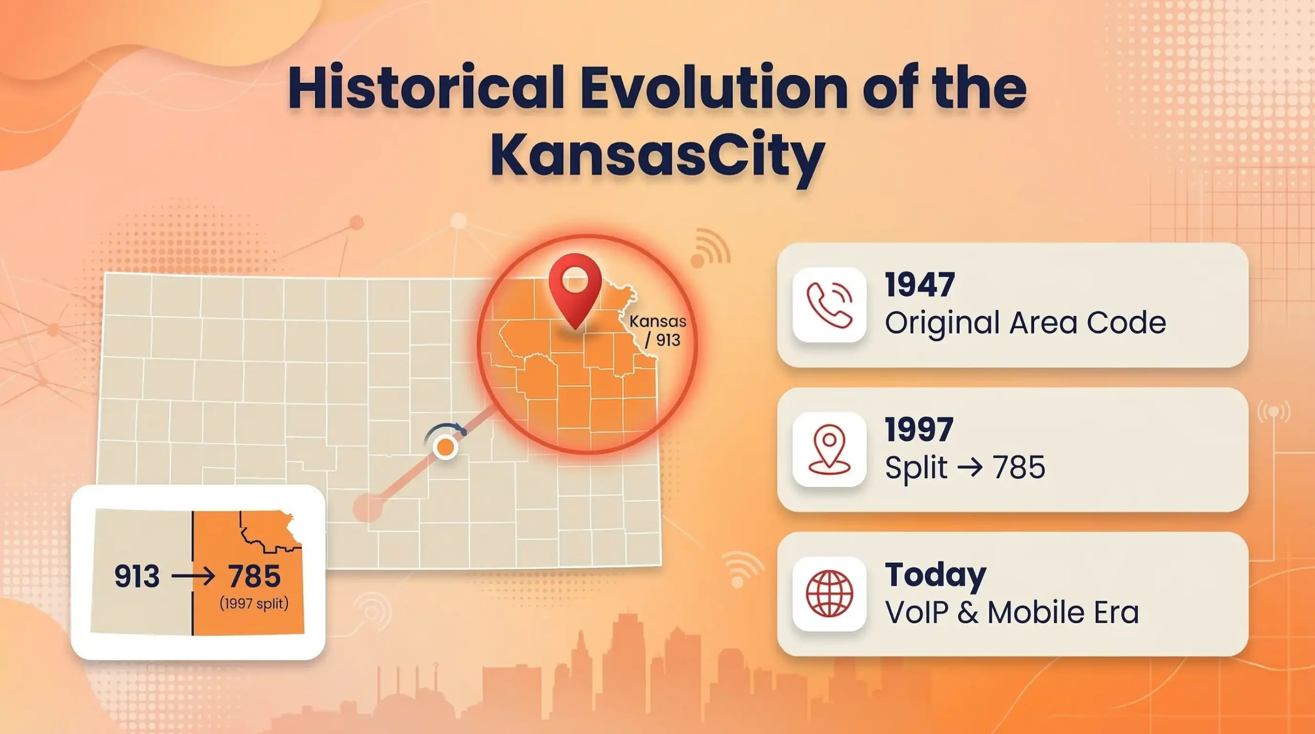 Tracing back to 1947, the 913 area code was among the inaugural codes in the NANP, initially encompassing northern Kansas from east to west. This vast coverage reflected the post-war boom in telephony, connecting rural farms with emerging urban centers. Over decades, it adapted to technological shifts, from rotary dials to digital switches.